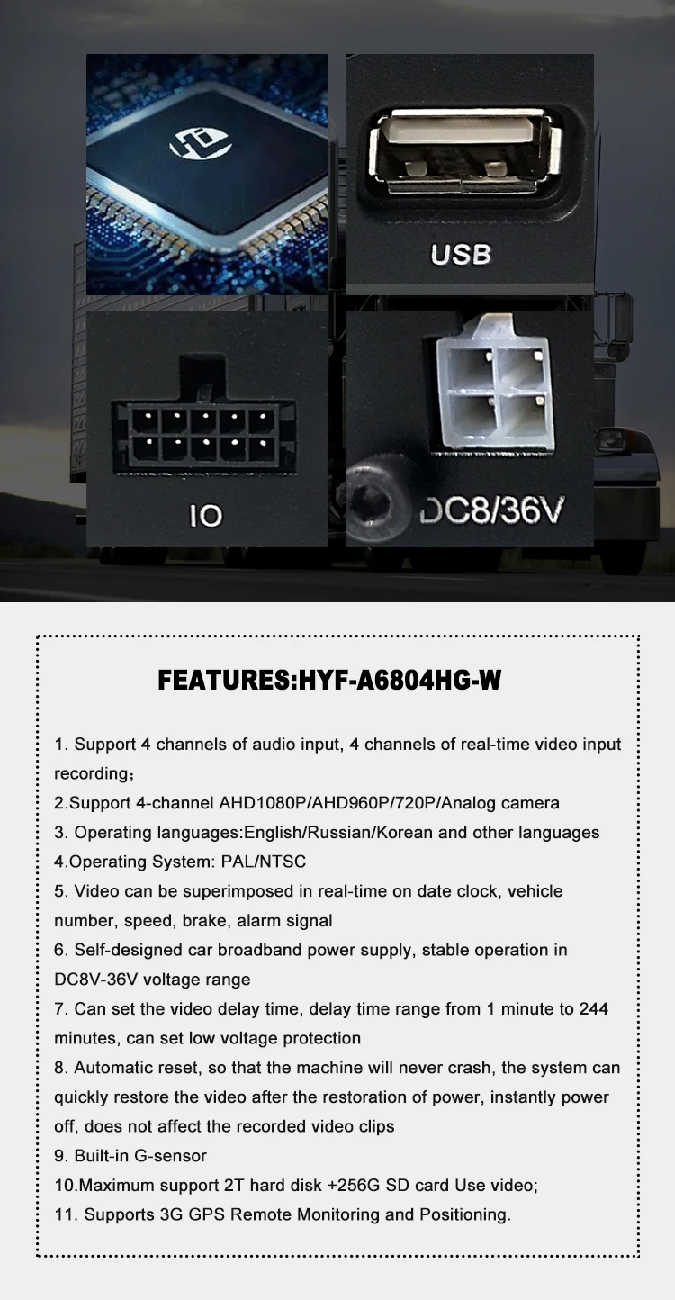 Видеорегистратор HYF, каждый из которых использует оригинальный промышленный чип Heise, может обеспечить стабильную работу в тяжелой холодной и тепловой среде.