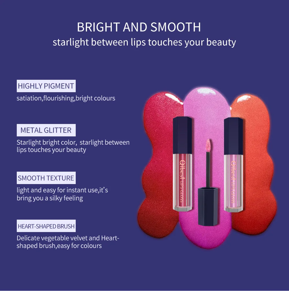 Qibest продолжительный блеск Губная помада Водонепроницаемый увлажняющий крем с бриллиантами для губ оттенок сексуальный Жидкий блеск для губ пигмент черный, Красный губ Краски