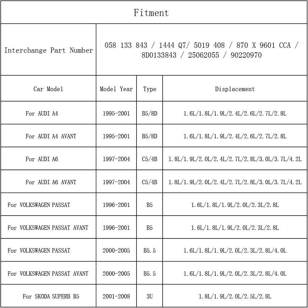 For Volkswagen Passat AVANT B5.5 2000 2001 2002 2003 2004 2005 1.6L 1.8L 1.9L 2.0L 2.3L 2.8L 4.0L