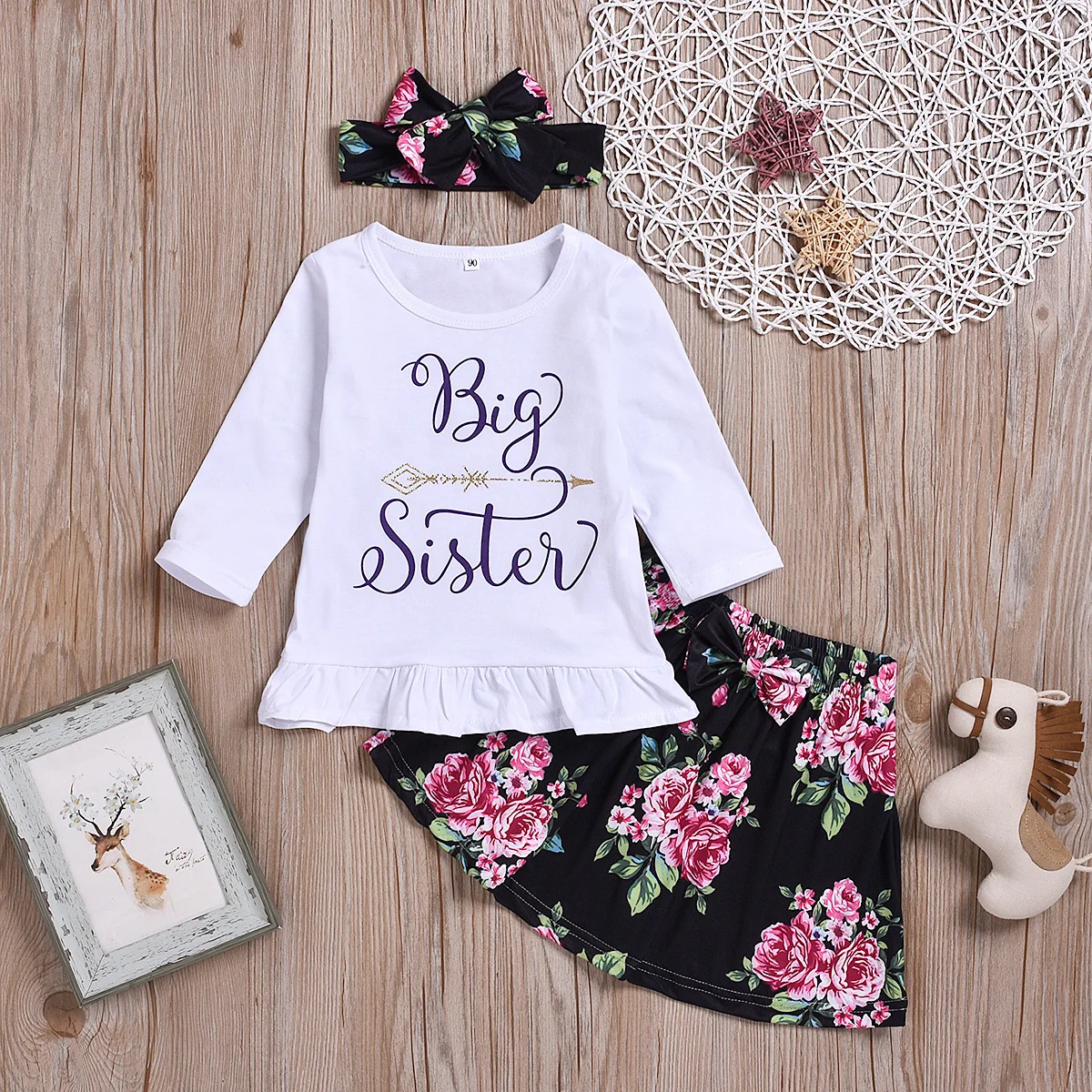 Puseky/одинаковые комплекты для семьи комплект из 3 предметов, футболка комбинезон, юбка повязка на голову, одежда для Близнецов с надписью «Big Little Sister» комплект одежды для маленьких девочек
