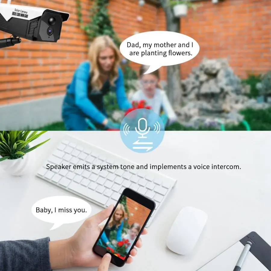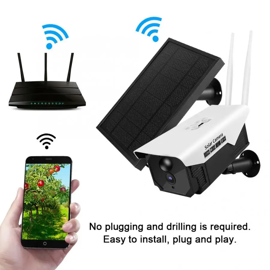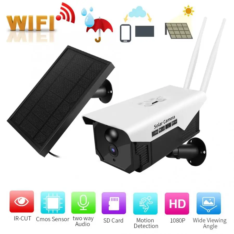 Оснащен Внешняя Солнечная панель и встроенной перезаряжаемой батареей, которая значительно улучшает работу аккумулятора (батарея может полностью заряжаться солнечными панелями в течение 8 часов при достаточном солнечном свете). Встроенный 6 инфракрасных огней, максимальный инфракрасный дистанционный до10 м/32.8ft, Чтобы получить такой же эффект, как в дневное время. Интеллектуальное обнаружение движения может обнаруживать движущиеся предметы и отправлять сигнал тревоги в мобильное приложение. Класс IP66 пыленепроницаемый и непромокаемый, не беспокойтесь о проникновении пыли и распыление дождя, что может обеспечить эффективный мониторинг даже в плохую погоду. Он принимает алюминиевый сплав и технический пластиковый материал, с хорошим тепловыделением. Может также поддерживать подключение Wi-Fi и 1080 P HD изображения. Начните запись после вставки tf-карты с максимальным объемом памяти 32 Гб. Видео будет автоматически закрываться, когда карта будет заполнена, не нужно вручную удалять видео.
