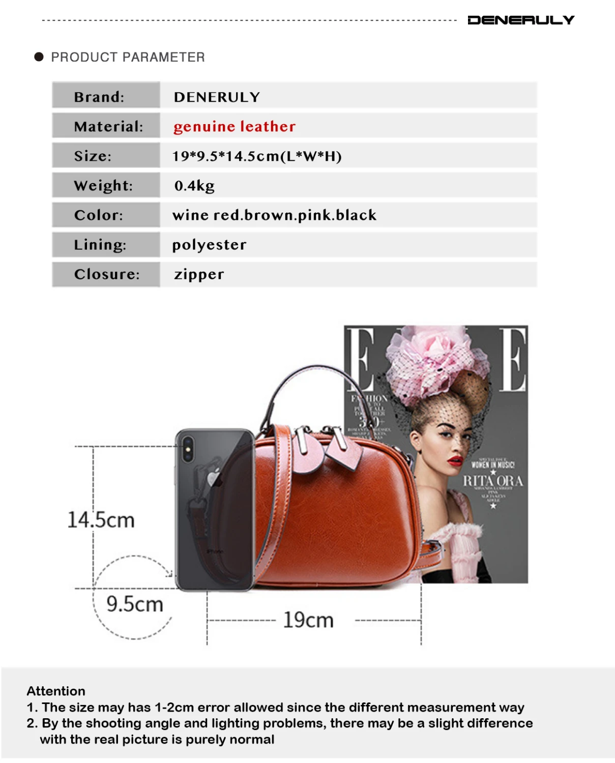 Бренд: DENERULY Внешний материал: натуральная кожа Внутренний материал: высококачественный полиэстер Цвет: винно-красный, коричневый, розовый, черный Размер: длина 7,5 * ширина 3,3 * Высота 6 (дюйм) Подарок: магазин и заказ получат дополнительные подарки, все товары получат дополнительные предложения]