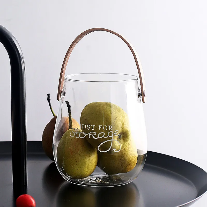 Nordic Modern Ins Leather Handle Glass Vase Creative Desktop Retro Design Transparent Glass English Word Vase