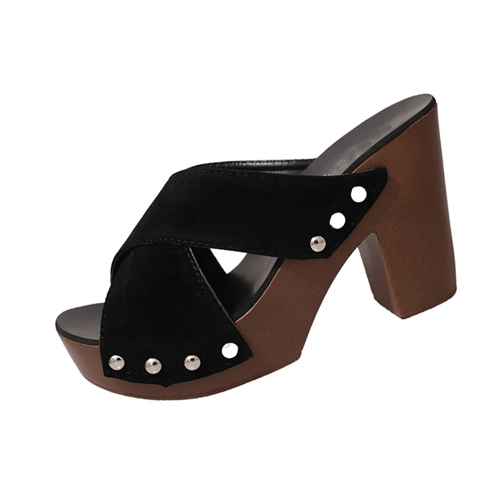 Сандалии женские на высоком каблуке, пикантные шлепанцы с перекрестными ремешками, на толстом высоком каблуке, сандалии с открытым носком, летняя обувь