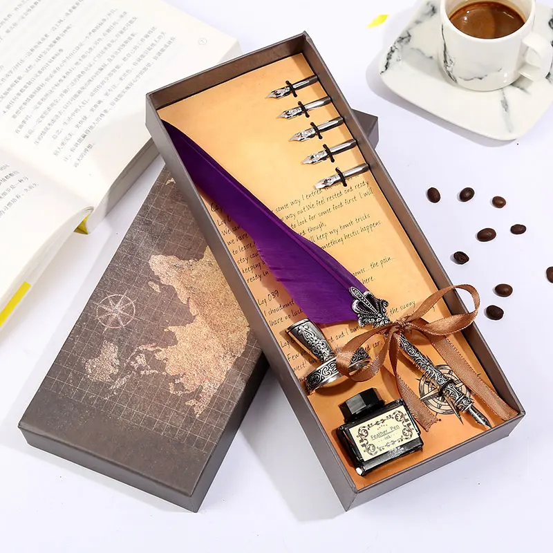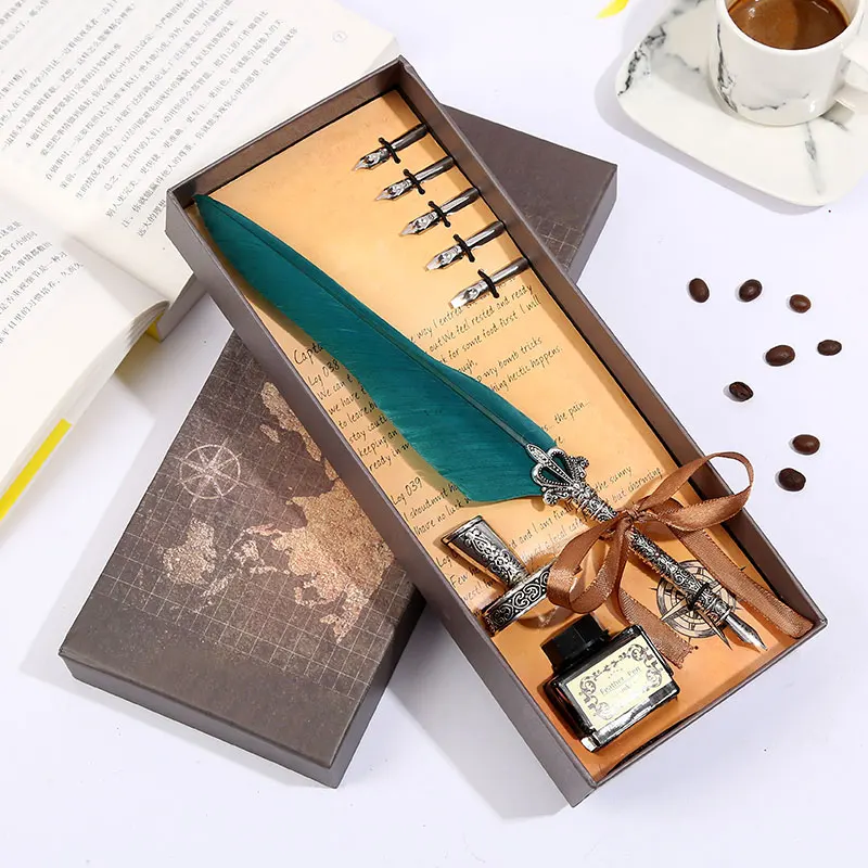 Ретро Винтаж каллиграфическая перо ручка для письма Канцтовары Подарочная коробка свадебный подарок на день рождения Особенности: 1. Простота в использовании, высококачественный наконечник, изготовлен из нержавеющей стали для гладкого письма. 2. Винтажная текстура медная ручка держатель, простой, джентльмен, гладкий корпус, чувствовать себя очень хорошо. 3. Подарочная упаковка, подходит для отправки пар, отправки пожилых людей, отправки учителя. Технические характеристики изделия: Цвет: десять цветов на выбор Размер изделия: перо Размер ручки: 25-26 см/9,8-10,2 дюйма размер подарочной коробки посылка: 27,5 см × 11 см × 4 см/10,83 дюйма × 4,33 дюйма × 1,5 дюйма полный подарок Вес: 260 г Материал изделия: держатель для ручки из сплава + перо из нержавеющей стали Конфигурация упаковки: длинные волосы корона стержень + чернила + кофе коробка + сиденье Примечания: 1. Наконечник пера составляет 1,0 мм. Каждое перо оснащено пятью наконечниками. № 1 3 мм, № 2 2,5 мм, № 3 2 мм, № 4 1,5 мм, № 5 1 мм,