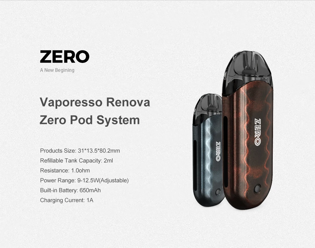 Система genova Zero pod имеет удлиненную овальную форму, размеры 31 мм x 13,5 мм x 80,2 мм и в основном изготовлена из цинкового сплава, но есть гладкое покрытие, которое облегчает захват. Он поставляется в 9 различных цветах, все из которых имеют матовое покрытие, которое минимизирует окрашивание отпечатков пальцев, и каждый их внешний вид поверхности был обработан различным материалом, прекрасно понимая «каждый цвет, уникальные ощущения от руки. Его pod соответствует требованиям FDA и сертифицирован по стандарту NSF/ANSI 51 для пищевого оборудования, Чтобы гарантировать безопасность парения. Vaping Zero Renova, вы испытаете чрезвычайно легкое наполнение и защиту от утечки с новой системой наполнения PTF (нажмите, чтобы заполнить). Аккумулятор 650 мАч не допустит длительного ожидания зарядки, потому что полная зарядка может быть завершена только через 45 минут. Для вейпинга, инновационная и уникальная технология vaporesso катушек CCELL внутри принесет вам более прочный, мощный и чистый ароматизатор. Эти катушки могут выдерживать тепло легче, чем другие традиционные материалы. Любые сгоревшие удары не будут происходить на поддержке OMNI Board Mini system, которая может похвастаться особенностями автоматического контроля температуры и множественной защитой. Другой другой момент от других систем pod-кнопка питания, нажатие кнопки mode 3 раза покажет вам три разных уровня мощности, давая вам возможность настроить ваши облака и никотин хит.