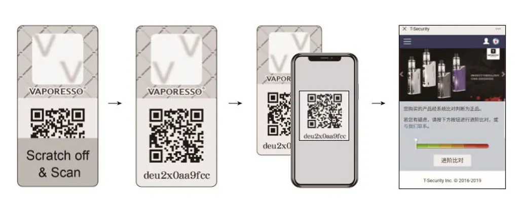 Поцарапайте крышку qr-кода (для неоткрытых пакетов крышка qr-кода должна оставаться неповрежденной) и Используйте свой мобильный телефон для сканирования qr-кода для проверки.