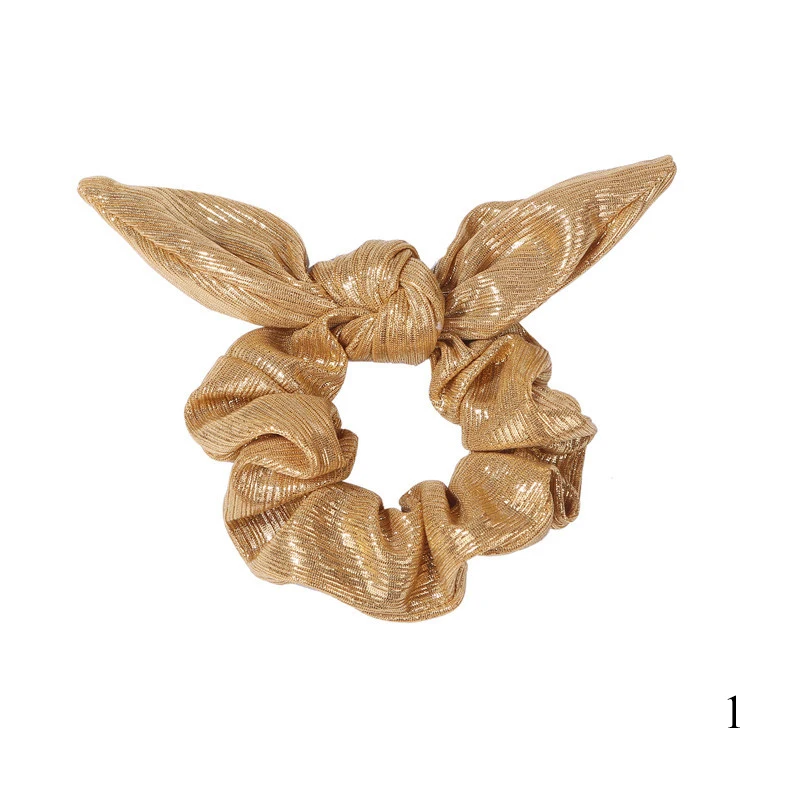 Серебряное золото металлик Кролик уши завязанный бант эластичная резинка для волос конский хвост Волосы Галстуки