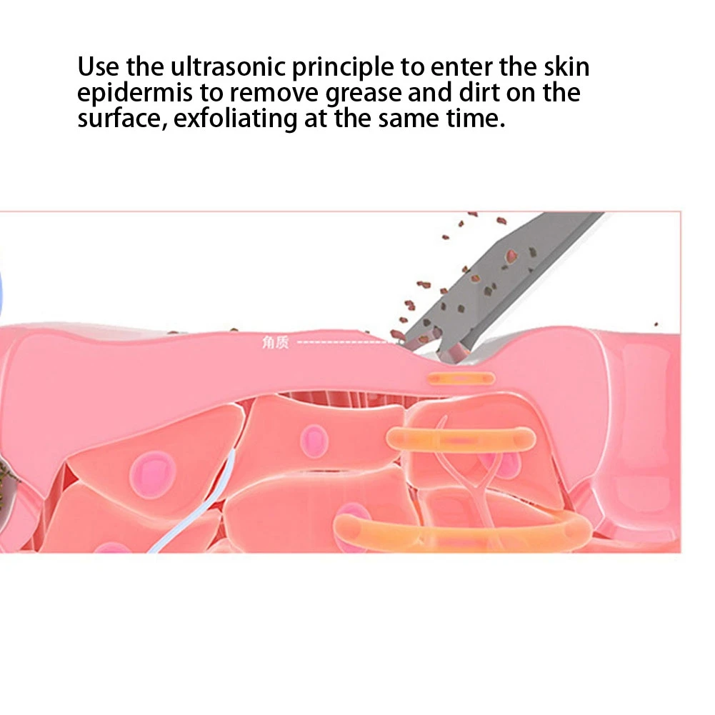 Работает через ультразвуковую вибрацию, которая может погружаться глубоко в поры, удаляет грязь, старения клеток и роговицы. Он эффективно устраняет прыщи, черные головы, устраняет морщины и очищает поры. Ускорьте циркуляцию крови, улучшите баланс, сломайте меланин и рассеивайте точку. Вибрационный массаж, очищающий и успокаивающий кожу, безопасный, без повреждений кожи и боковых эффектов. Прочный, полностью заряженный, он может прослужить около 14 дней, не беспокойтесь о том, что он скоро отключится.