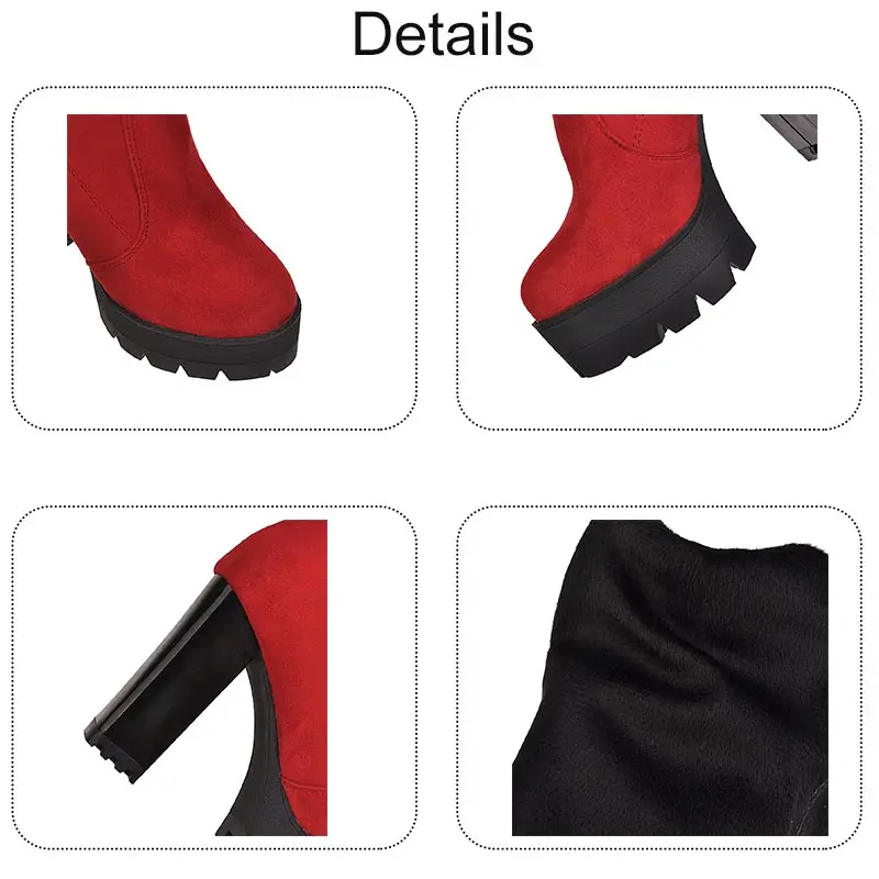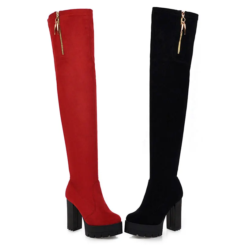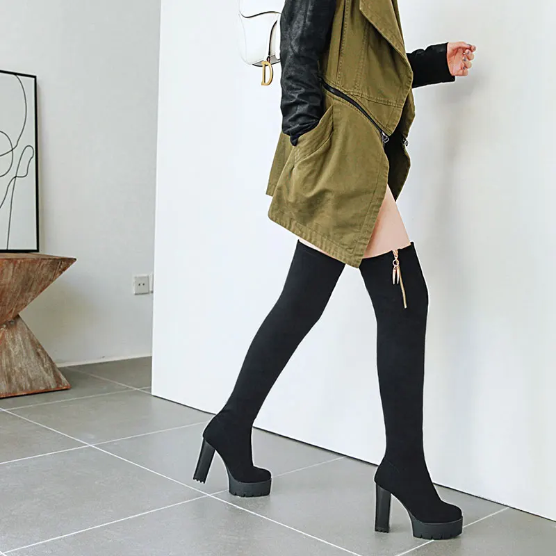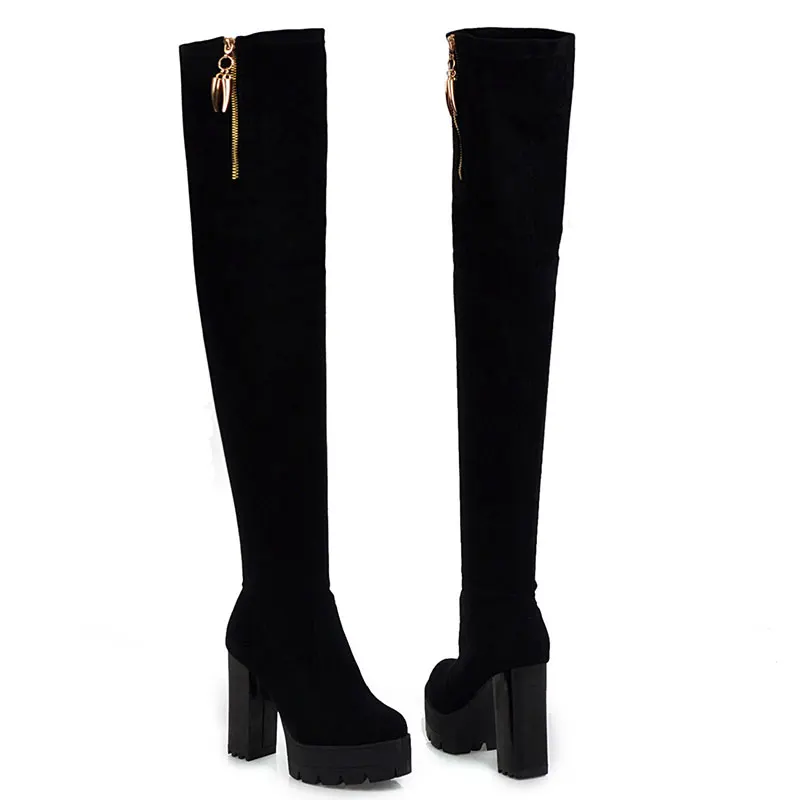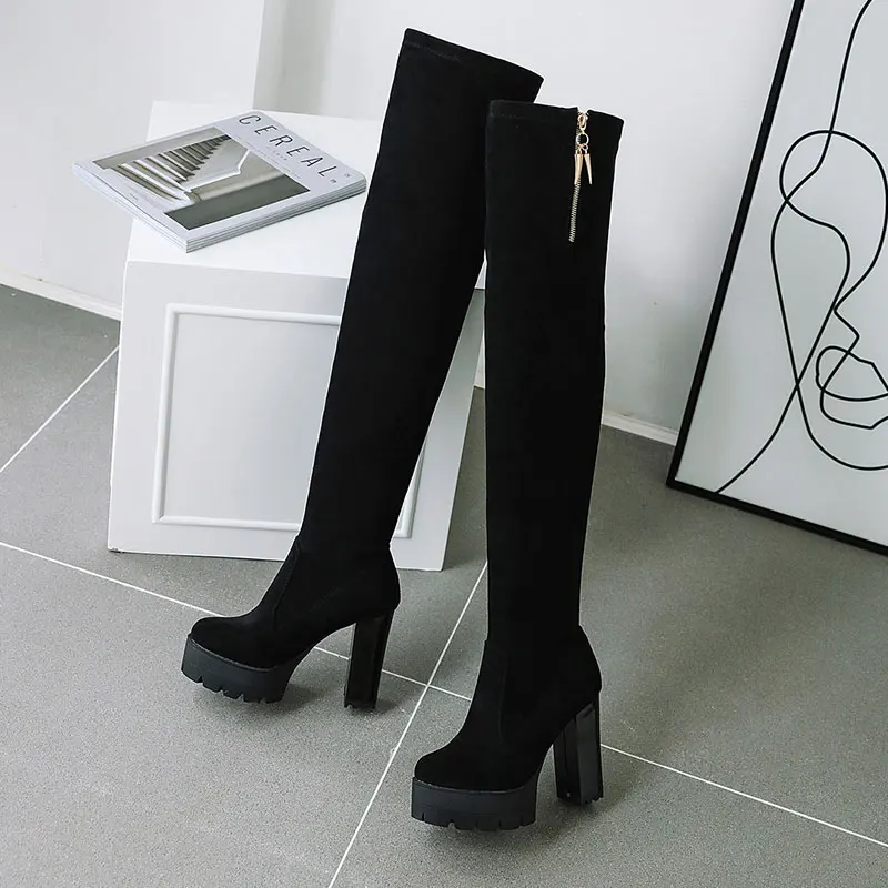 Lloprost ke/Сапоги выше колена из флока Осенняя женская обувь на молнии на высоком массивном каблуке зимние женские сапоги обувь H586