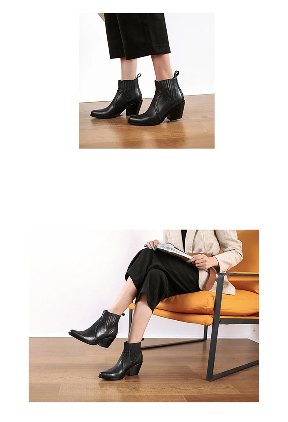 Новое поступление; Модные ботильоны; Сезон весна-осень; Ботинки «Челси» из натуральной кожи; Удобная женская обувь ручной работы на толстом каблуке