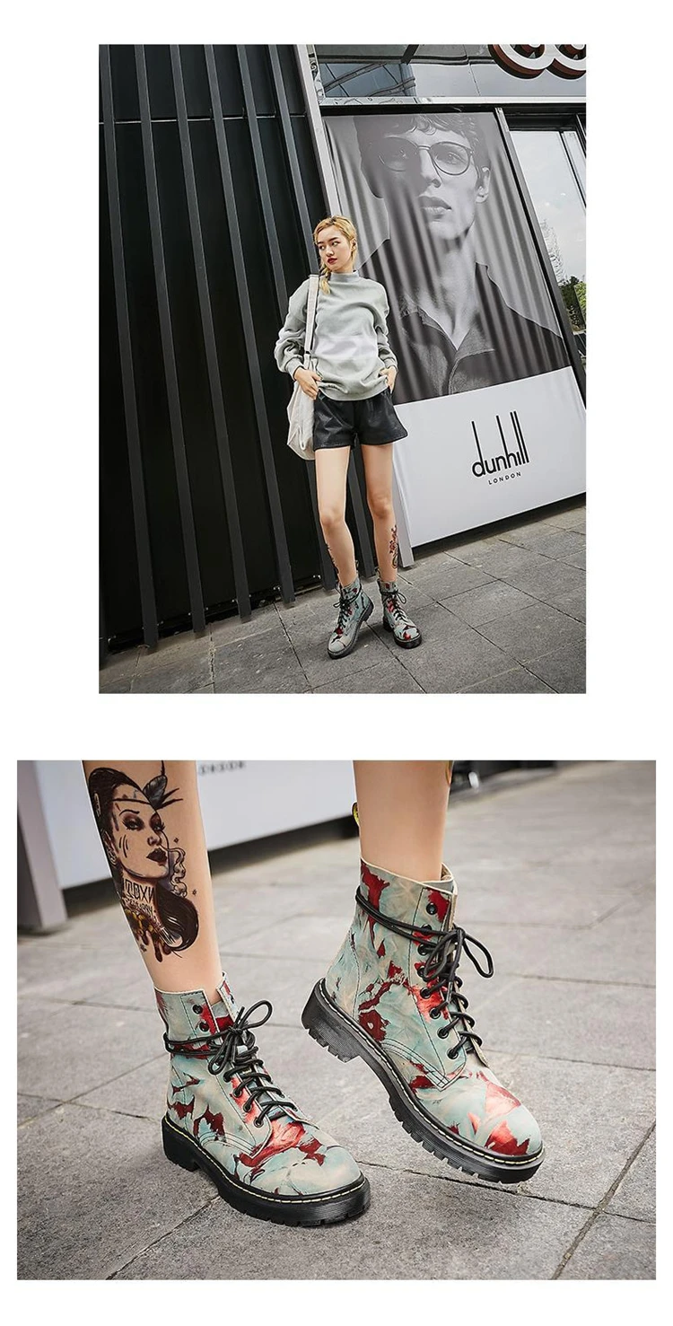 Женские ботинки из натуральной кожи; Зимние ботильоны; Теплая обувь на низком каблуке и платформе со шнуровкой с круглым носком; Новинка 2019 года; Бесплатная доставка