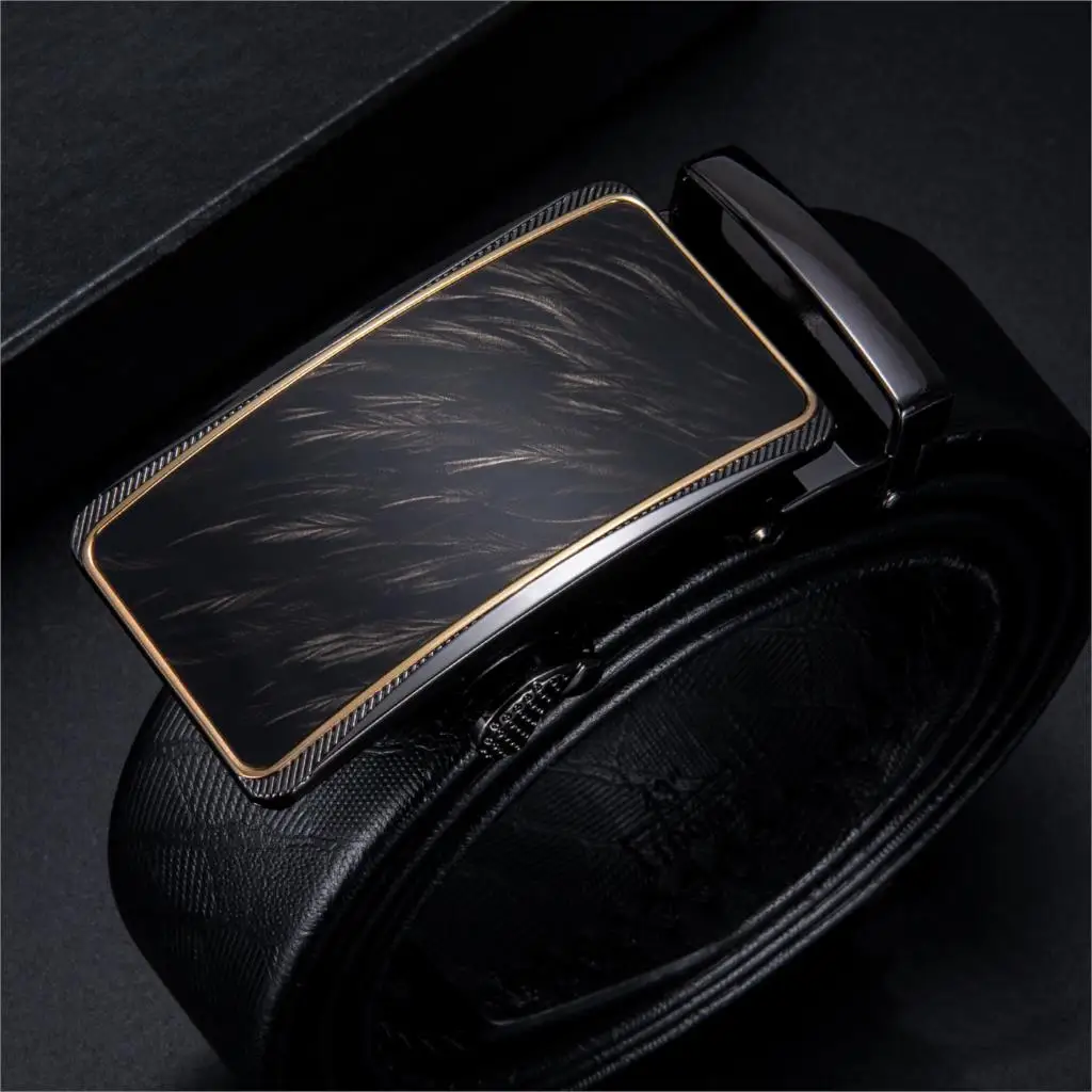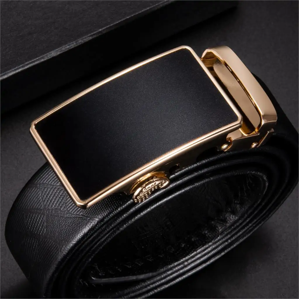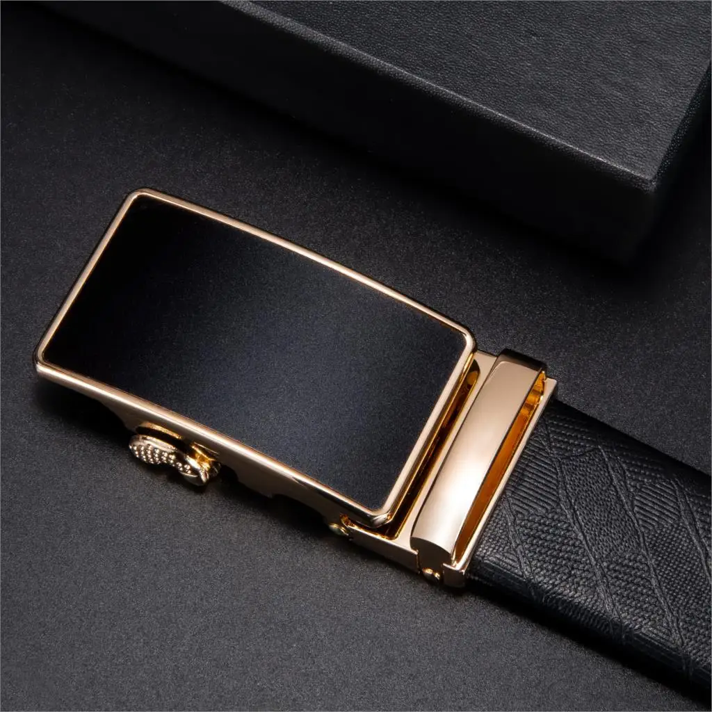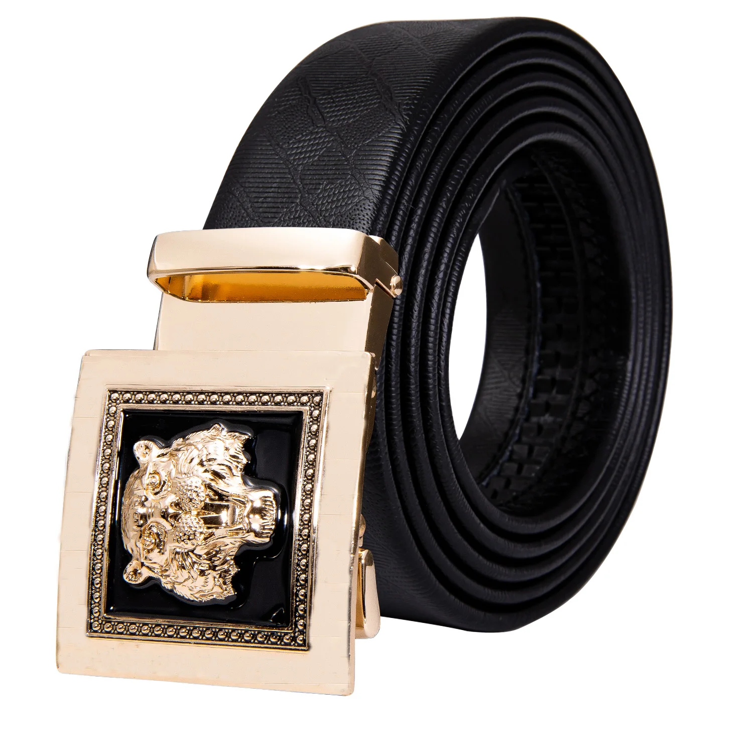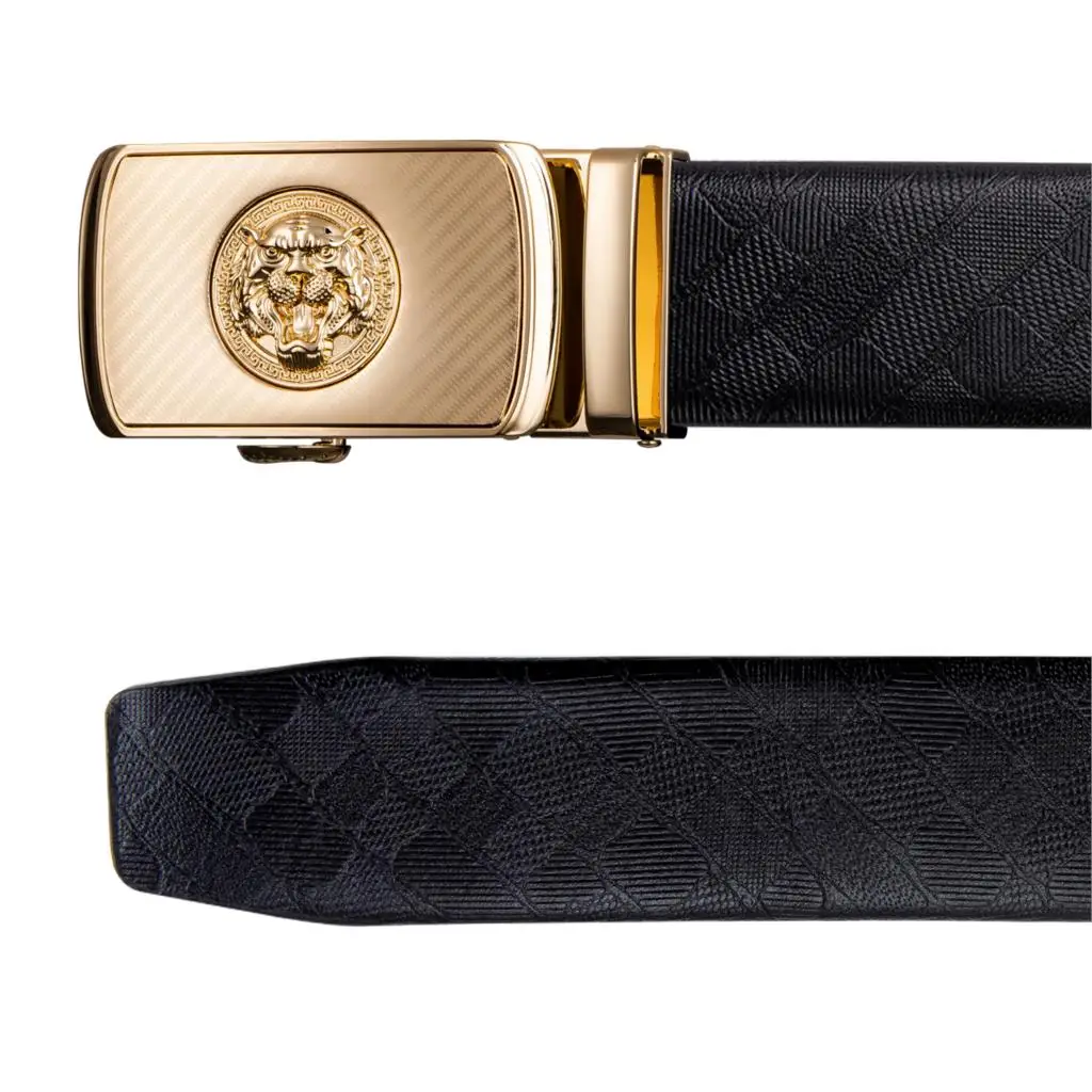 Тигр Пряжка пояса для мужчин из натуральной кожи Пояс Золото Автоматическая Ratchet пряжка пояса ремень черный без отверстий подарок для отца Супруг