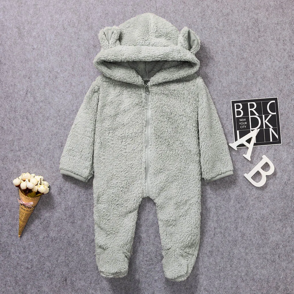 Для новорожденных, для маленьких мальчиков Зимний флисовый комбинезон; Однотонный комбинезон с капюшоном; Теплое пальто; Верхняя одежда