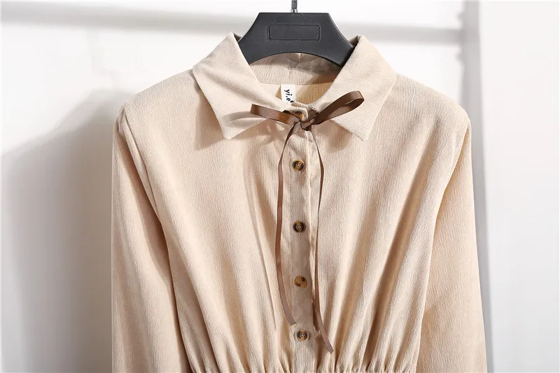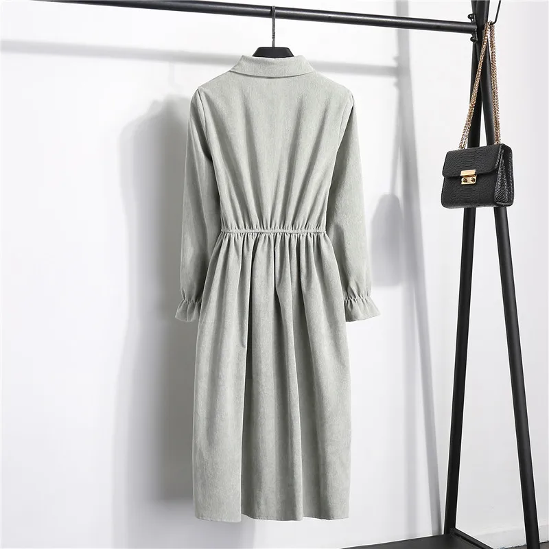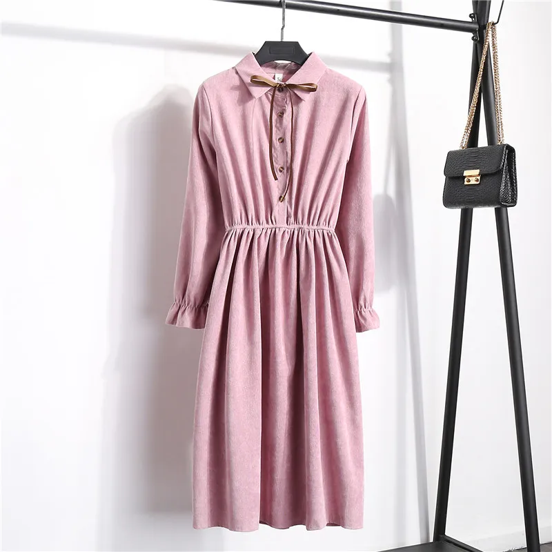 Женское вельветовое платье LYJMTDBK, однотонное однобортное платье с длинными рукавами и отложным воротником, базовое платье с эластичной талией в стиле ретро на осень и зиму