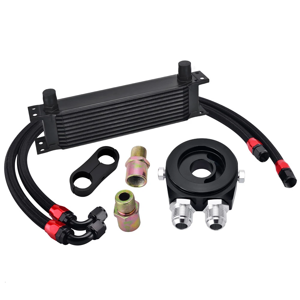 SPEEDWOW Универсальный 10ROW трансмиссионный масляный охладитель + Масляный фильтр-охладитель Сэндвич-адаптер + Поворотный шланг AN10, аксессуары для автомобиля