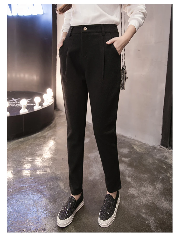 Женские шерстяные брюки-карандаш LYJMTDBK, повседневные офисные брюки с высокой талией на осень и зиму, плотные утепленные штаны-шаровары, 2019