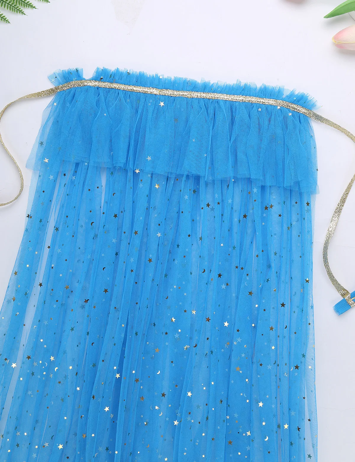 Прозрачный тюль, легкий, дышащий и мягкий. Застежка на завязках на шее позволяет легко надевать и снимать.