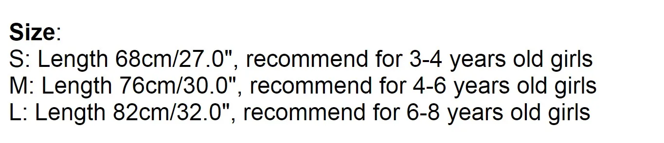 S: Длина 68 см/27,0 дюйма, рекомендуется для девочек 3-4 лет