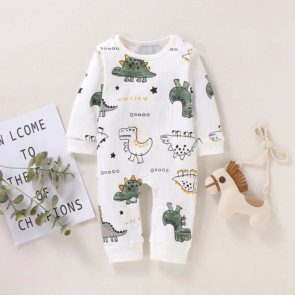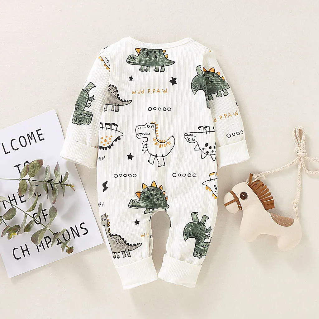 Комбинезон с длинными рукавами и рисунком динозавра для маленьких мальчиков и девочек; Комбинезон; Одежда