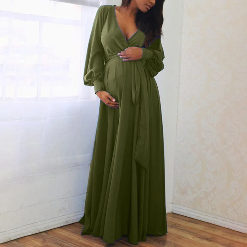 Женское платье с оборками, v-образным вырезом и длинным рукавом для беременных