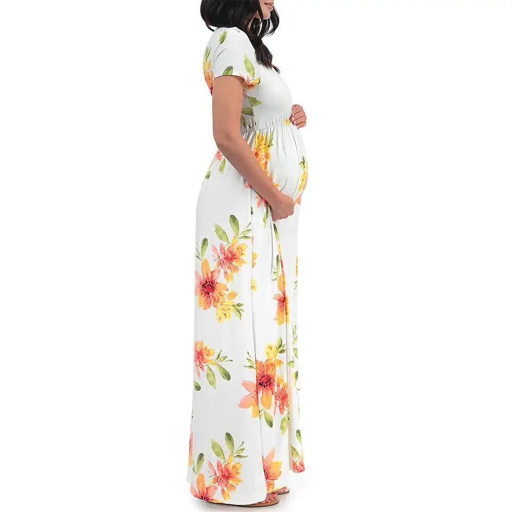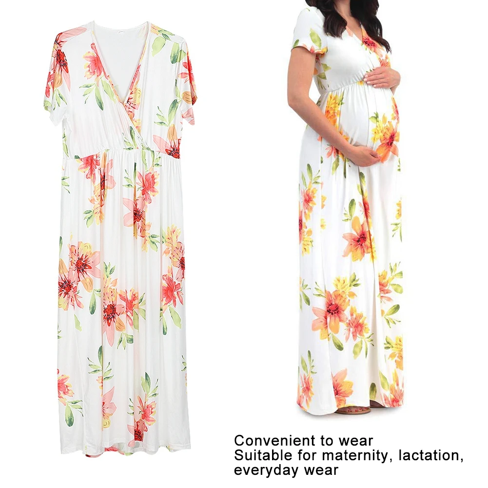 Платье для беременных с коротким рукавом с цветочным принтом, халат для кормящих женщин, летний Повседневный женский сарафан для беременных кормящих