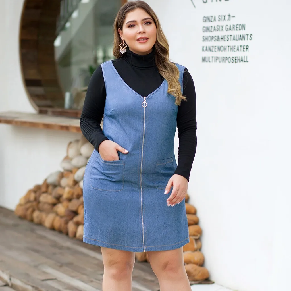 Женское повседневное джинсовое платье размера плюс с v-образным вырезом и рукавами-фонариками