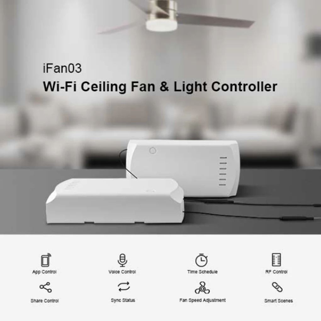 Ищете умный переключатель, чтобы легко управлять потолочным вентилятором с подсветкой, висящей сверху? Единый ищет! SONOFF iFan03-это то, что вам нужно. iFan03, новая версия iFan02, более стабильная в производительности, которая является потолочным вентилятором Wi-Fi и световым контроллером, поддерживаемым для управления потолочным вентилятором с подсветкой, используя ваш телефон, где бы вы ни были. Голосовое управление разработано для того, чтобы вы могли легко управлять iFn03, чтобы включить или выключить вентилятор и свет, не нужно никаких ручных операций. Поддержка управления потолочным вентилятором с помощью света с вашего телефона, где бы вы ни были и когда бы вы ни захотели. Расписание для включения и выключения в дневное или ночное время, или в любое время в течение дня, и он включится или выключится автоматически. Поставляется с пультом дистанционного управления RM433, где вы можете регулировать вентилятор среди низкой, средней и высокой скорости для получения различных уровней прохлады. Функция сцен в приложении позволяет управлять одним или несколькими устройствами SONOFF, быстро и одновременно одним нажатием.