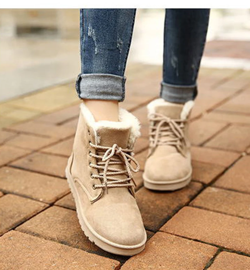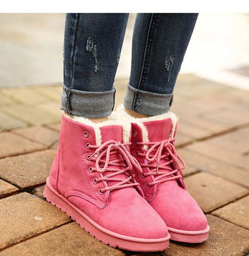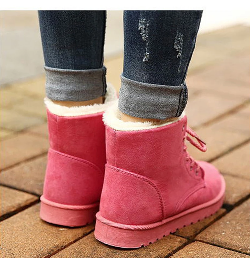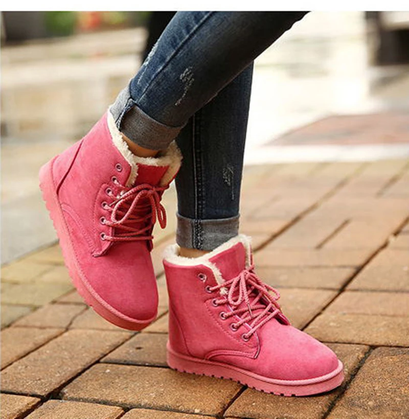 Женские зимние ботинки; зимняя обувь; ботильоны для женщин с плюшевой подкладкой на шнуровке; женская теплая обувь на платформе; женская обувь на плоской подошве; chaussures femme