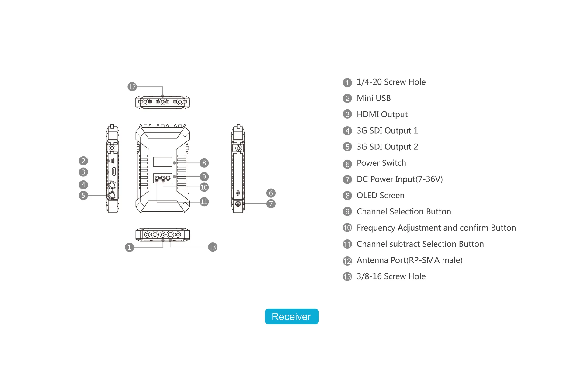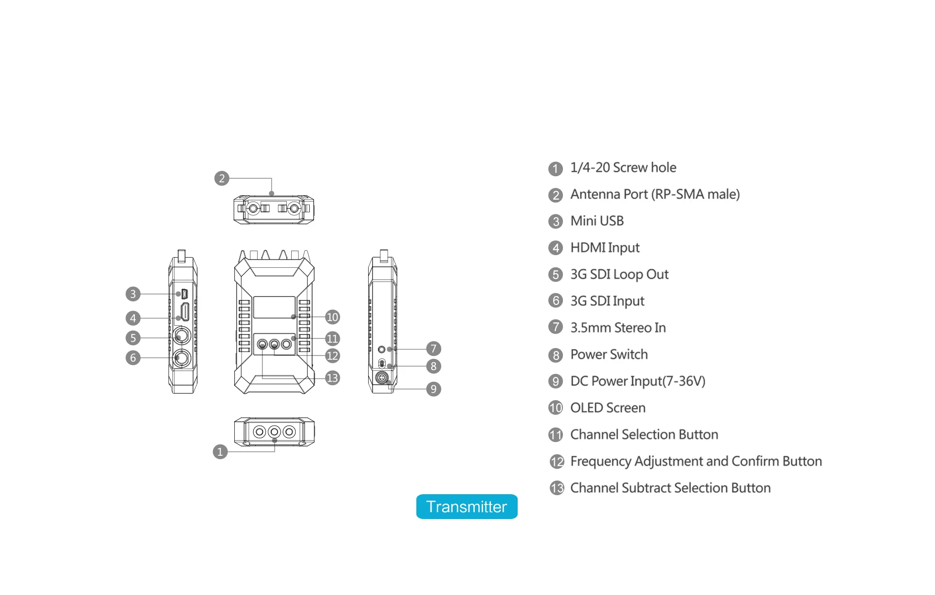 Передатчик: SDI/HDMI вход/SDI выход; Приемник: двойной SDI выход/HDMI вход