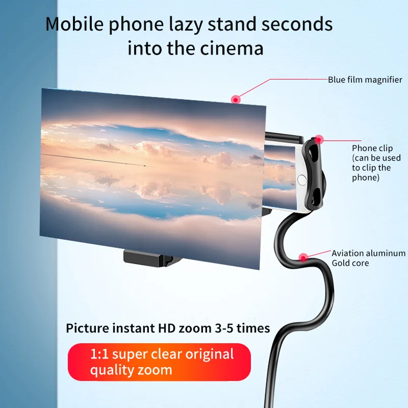 Сочетание мобильный телефон усилитель и ленивый стенд. 3D сотовый телефон усилители уменьшить дискомфорт и усталость глаз, вызванных долгосрочной перспективе с акцентом на малые экраны. Подставка удерживает экран на соответствующем расстоянии от глаз, защищая ваше видение и шею.