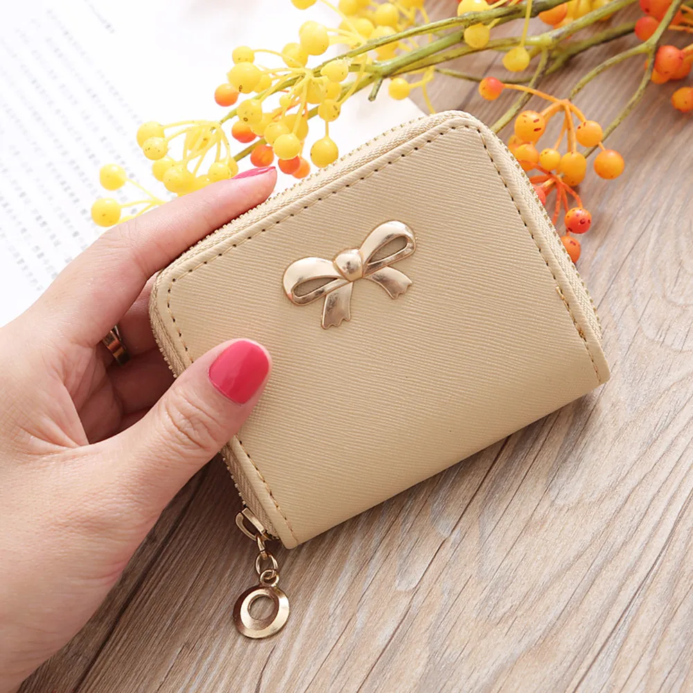 Женский кошелек для девочек, модный, с бантом, Одноцветный, на молнии, с бантом, маленькая квадратная сумка, сумки для монет, 2019 Новое поступление, дизайнерские сумки