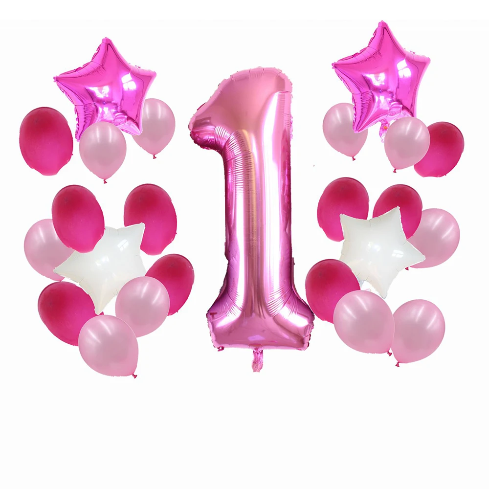 Включает в себя: розовый комплект: розовые звезды 2 + белые звезды 2 + розовый красный 10 + розовый 10 + количество воздушных шаров 1
