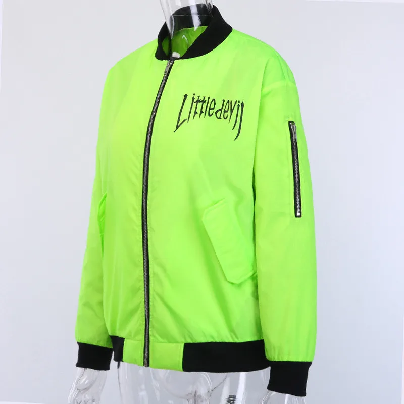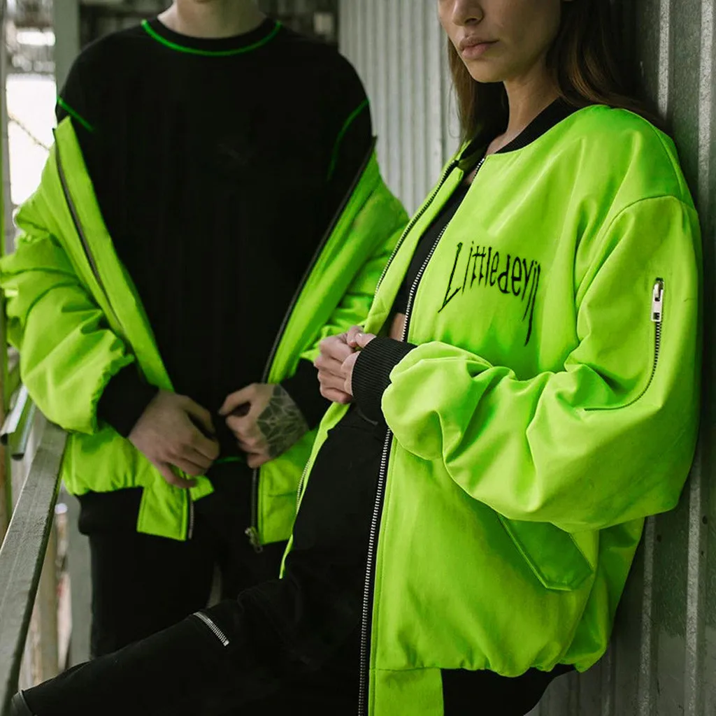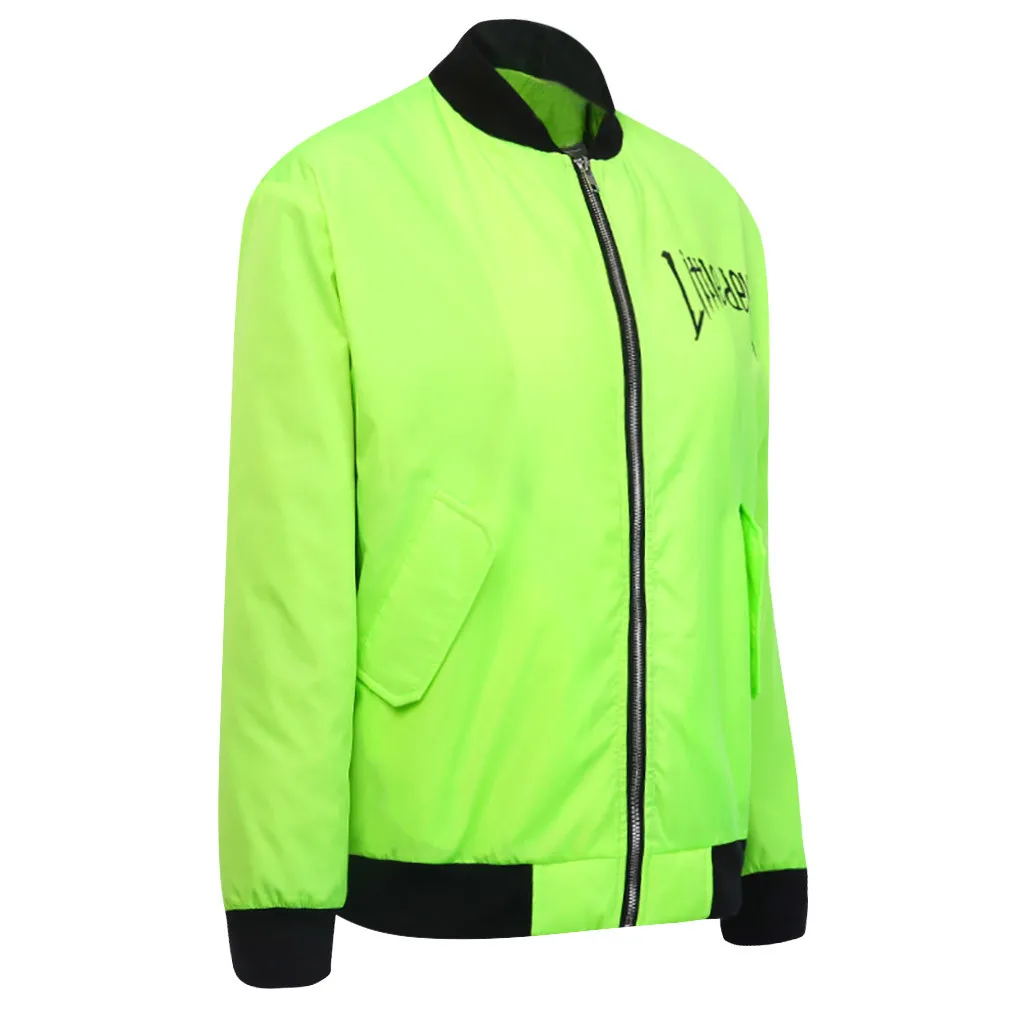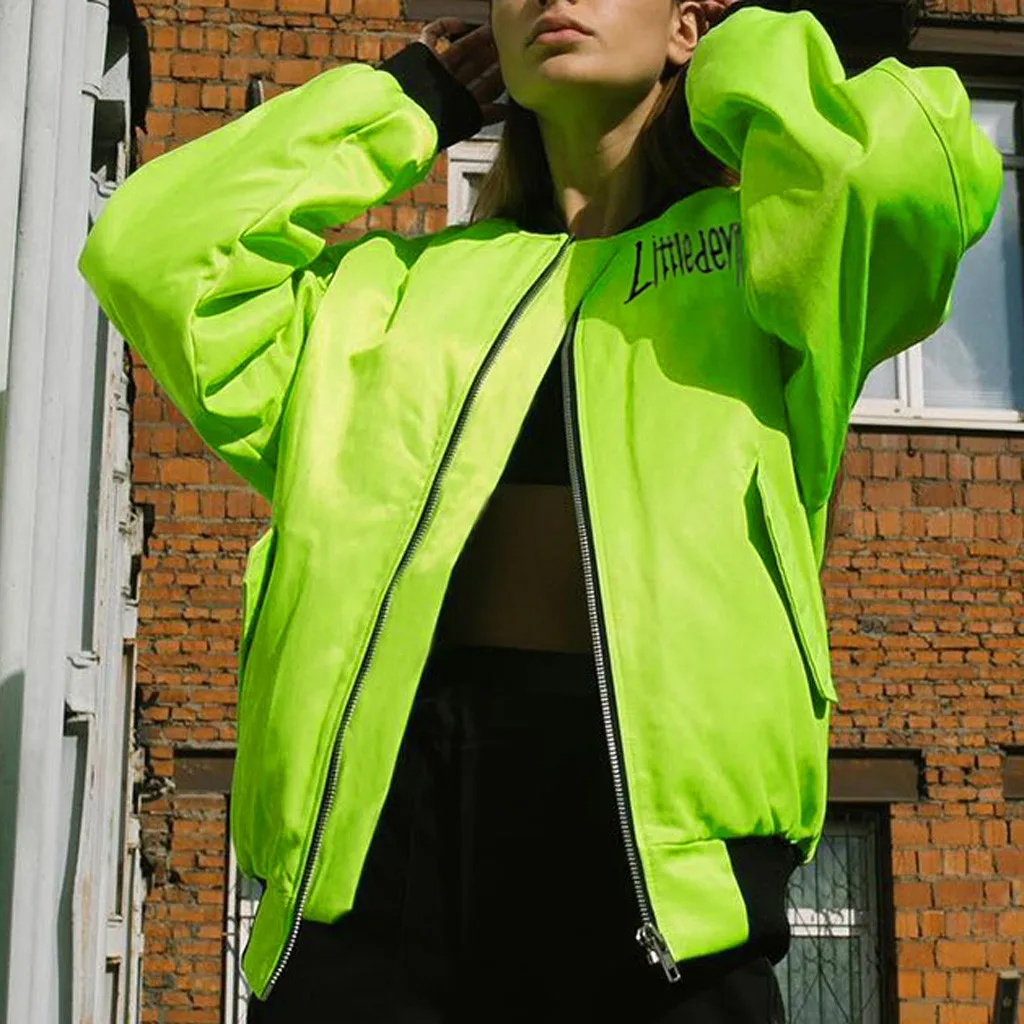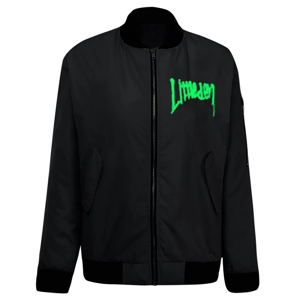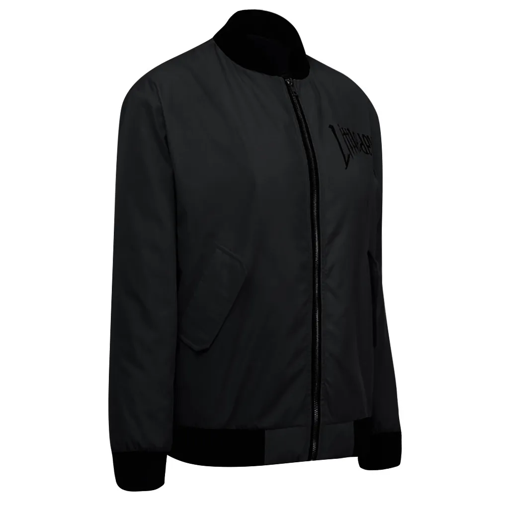 Women Fashion Street Stand Collar Zipper Letter Print Long Sleeve Long Coat