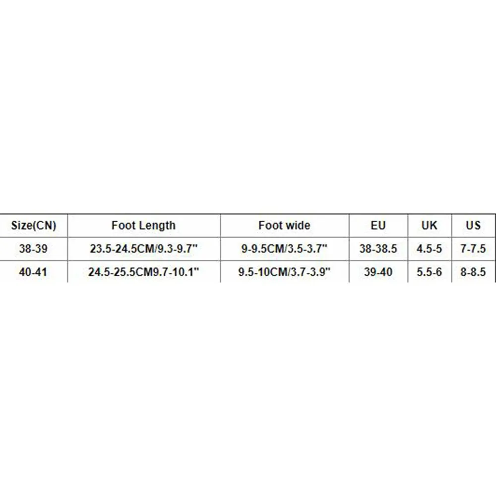 Размеры (CN) Foot Длина При покупке обувь на широкую ногу ЕС Великобритания Свяжитесь с нами 38-39 23,5-24,5 см/9,3-9,7" 9-9,5 см/3,5-3,7" 38-38,5 4,5-5 7-7,5 Большие размеры 40-41 24,5-25.5CM9.7-10,1" 9,5-; высотка каблука 10 см/3,7-3,9" 39-40 5,5-6 8-8,5