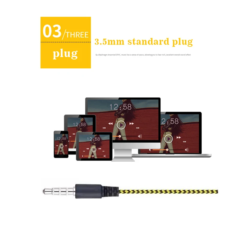 Описание продукта: Тип интерфейса: стандартный 3,5 мм разъем для наушников Одновременное подключение двух телефонов с микрофоном Размер драйвера: 10 мм Кабель: 1,2 м Цвет: белый, красный, зеленый, синий, желтый Связь: проводной Функция: шумоподавление, микрофон Посылка включает в себя: 1 * проводные наушники