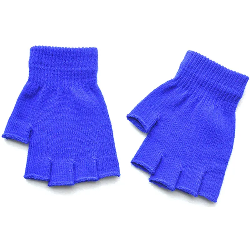 Женские и мужские перчатки без пальцев, одноцветные вязаные варежки, мягкие теплые