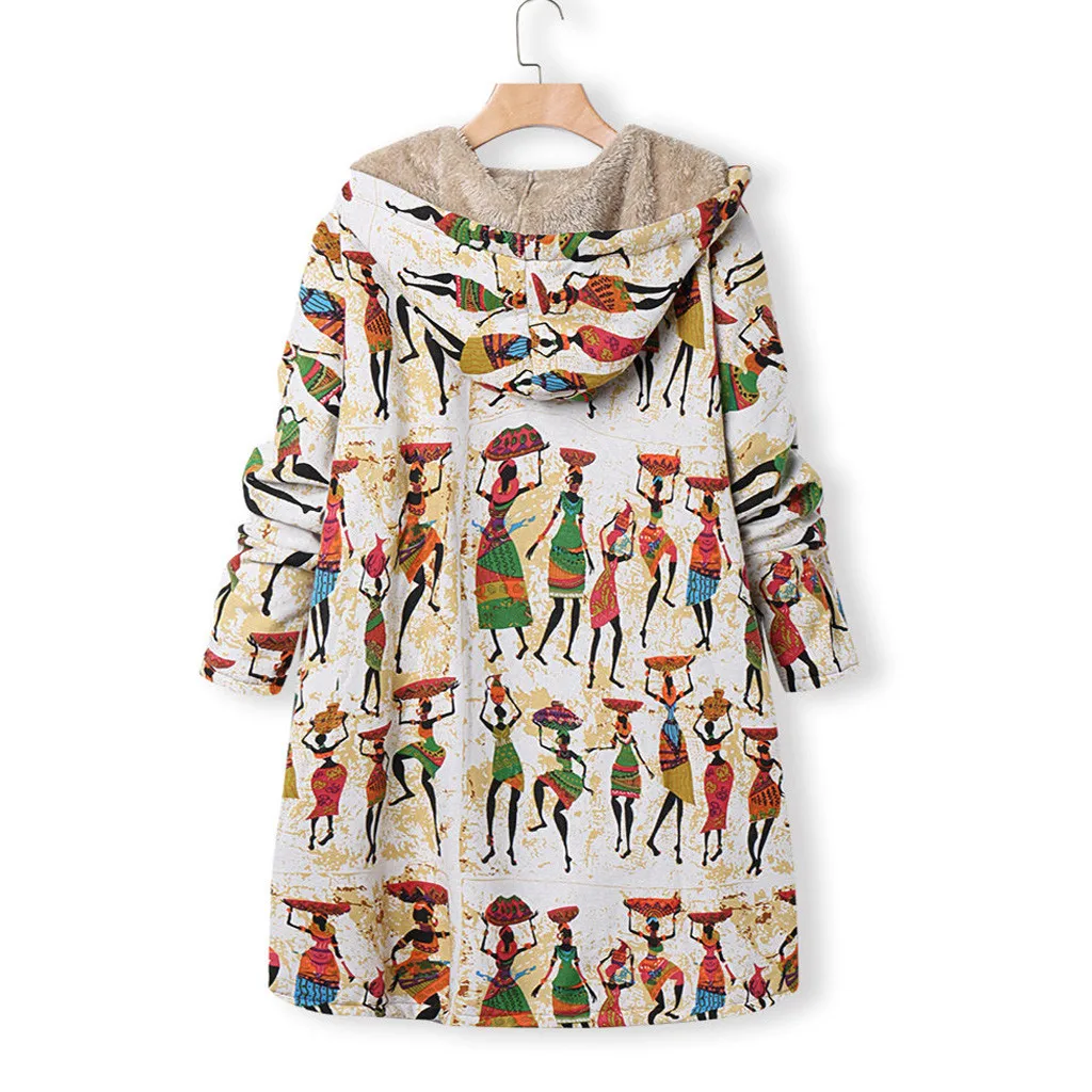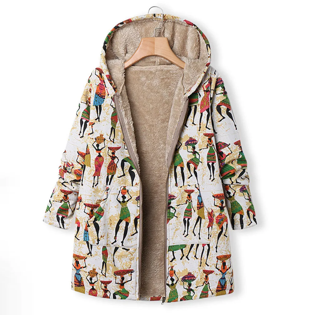 Плюс Размеры Для женщин зимние теплые Винтаж с цветочным принтом Толстая Верхняя одежда куртка на молнии