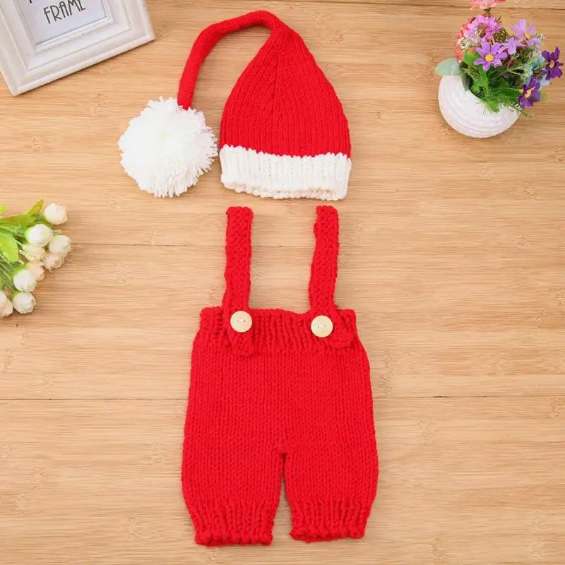 2 шт./компл. милый для новорожденных вязаный реквизит для фотосъемки комбинезоны шляпа праздничный наряд костюм