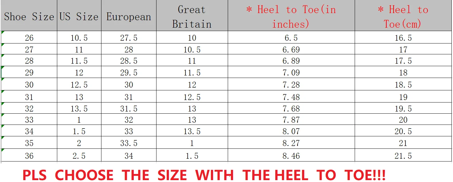 3:The way to choose perfect shoes for your children.Foot length+0.5-1cm=insole length. Such as kid's foot length as below.IF her/his foot length is 20cm,you can add 1cm.That's to say,choose insole length 21cm.Thank you for your support.