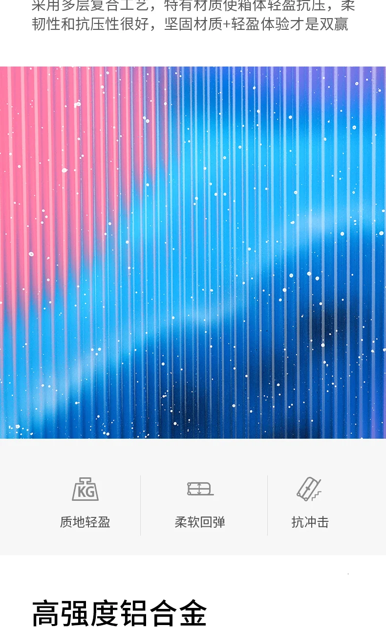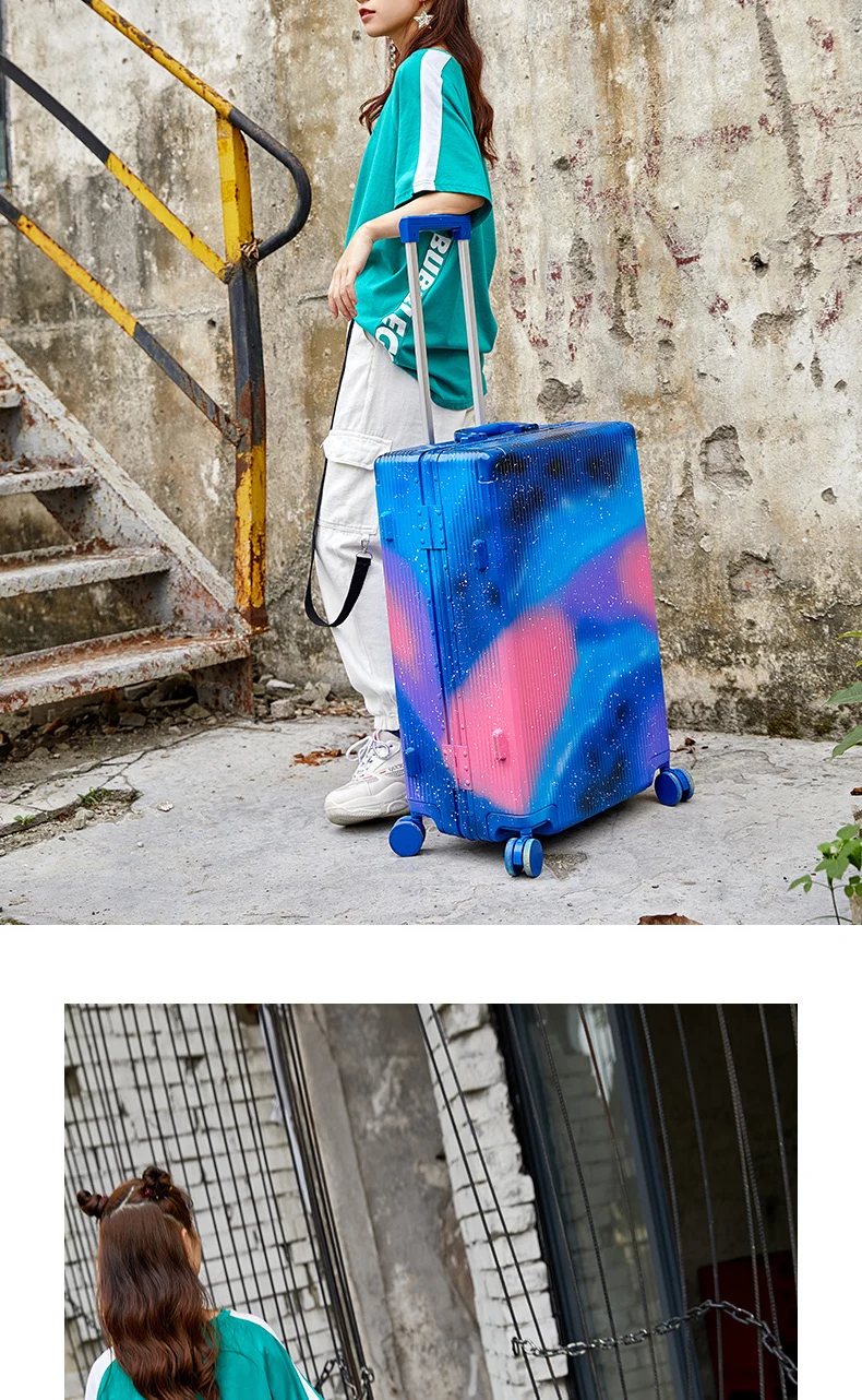 Материал: АБС + ПК Рулевой стержень: толстый стержень из алюминиевого сплава Цвет: Волшебное звездное небо Замок: TSA таможенный замок Колесо: вращающийся на 360 ° бесшумный ролик Размеры: 20/24/28In Вес нетто: 3,6 кг/4,3 кг/5,2 кг