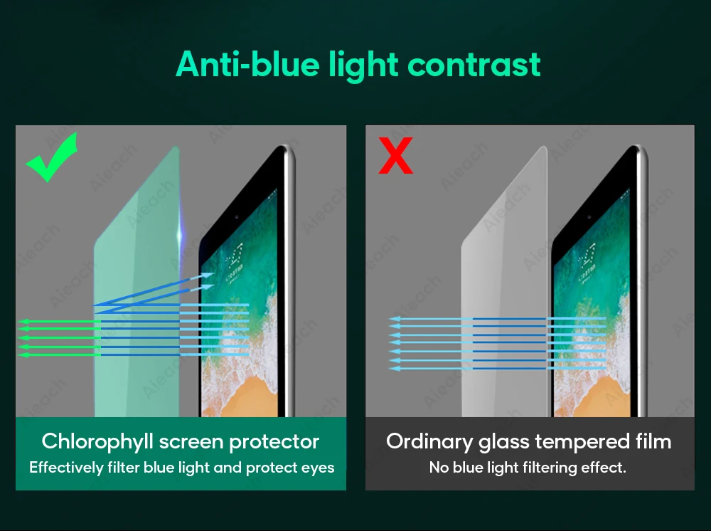 Хлорофилла Экран протектор ①-Фильтрующий синий светильник/вредные лучи, излучающий зеленый светильник для защиты глаз. ②-Улучшенная твердость и повышенная защита.