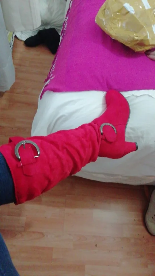 Женские сапоги до колена Lloprost ke, Осенняя обувь из искусственной замши с пряжкой на шпильке, большие размеры 43, зима 2019