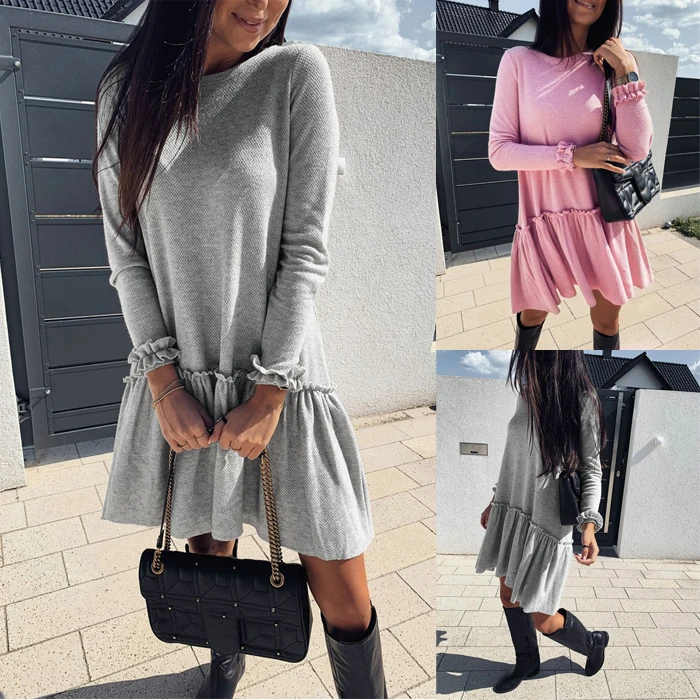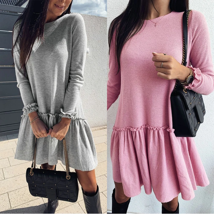 Стиль: Плиссированное Платье с длинными рукавами и оборками