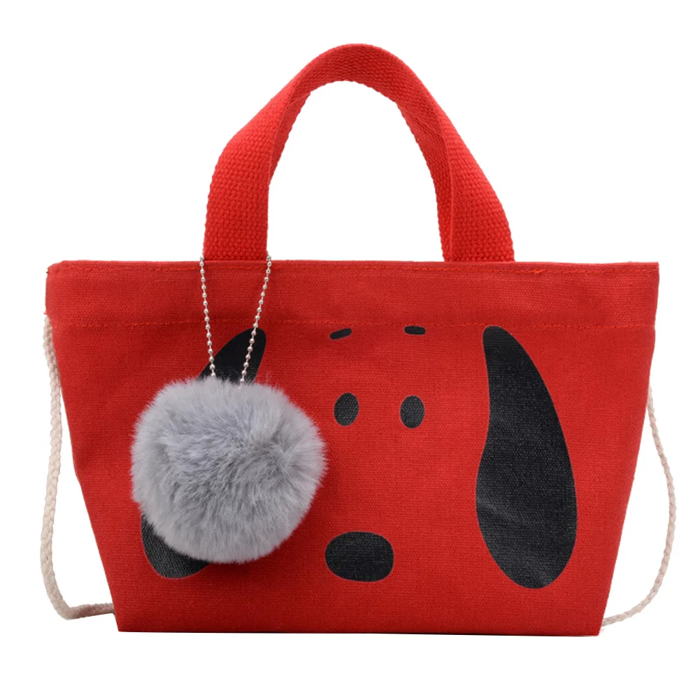 Детская одежда для девочек с принтом в виде собаки для помпоном Декор Сумка-тоут сумка через плечо сумка тканевая через плечо