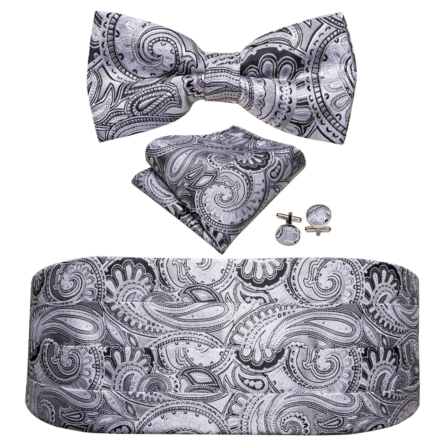 Мужской серебряный галстук-бабочка, набор, Цветочный галстук-бабочка, серый пояс с регулируемой талией для свадьбы, Barry.Wang YF-1023
