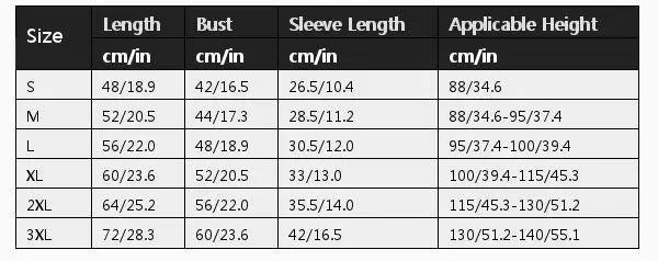 Размер; Длина; Обхват груди; Длина рукава; Подходящий рост