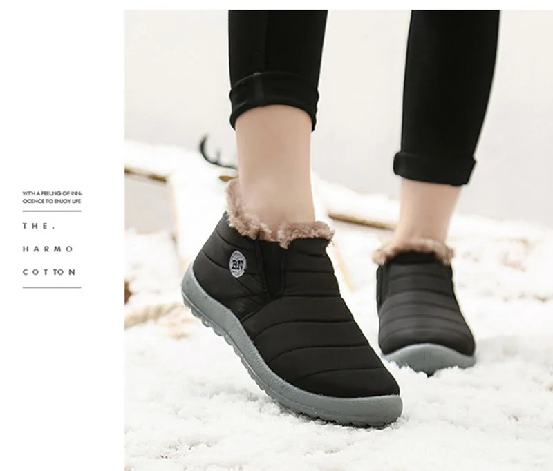 Женские Водонепроницаемые зимние ботинки с нескользящей подошвой, теплые зимние ботинки с плюшевой подкладкой, однотонная женская обувь размера плюс, 2019