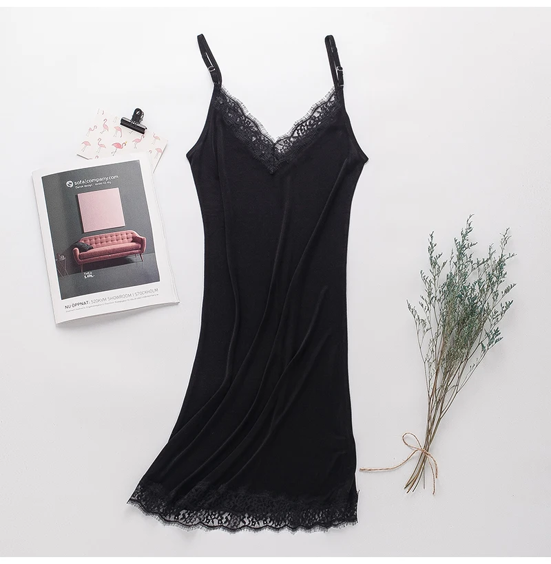 Изготовлено из 50% чистого шелка и 50% вискозного трикотажного эластичного полотна. Эластичная, дышащая и очень мягкая на ощупь ткань. Полные слипы для под платья Особенности Сексуальная кружевная отделка, без рукавов, v-образный вырез, регулируемые бретельки и длина выше колена. Можно использовать весной/летом/осенью/зимой.