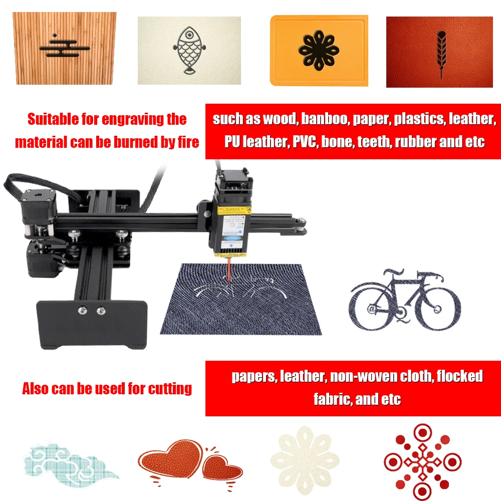 Подходит для гравировки материала может быть сожжен огнем, например, дерево, бумага, пластик, кожа, искусственная кожа, ПВХ, кость, зубы, резина, красочная керамика, цветной алюминий, булыжник, некоторые из нержавеющей стали, phoneshell, лак для выпечки, Электрофоретическое покрытие и т. Д.